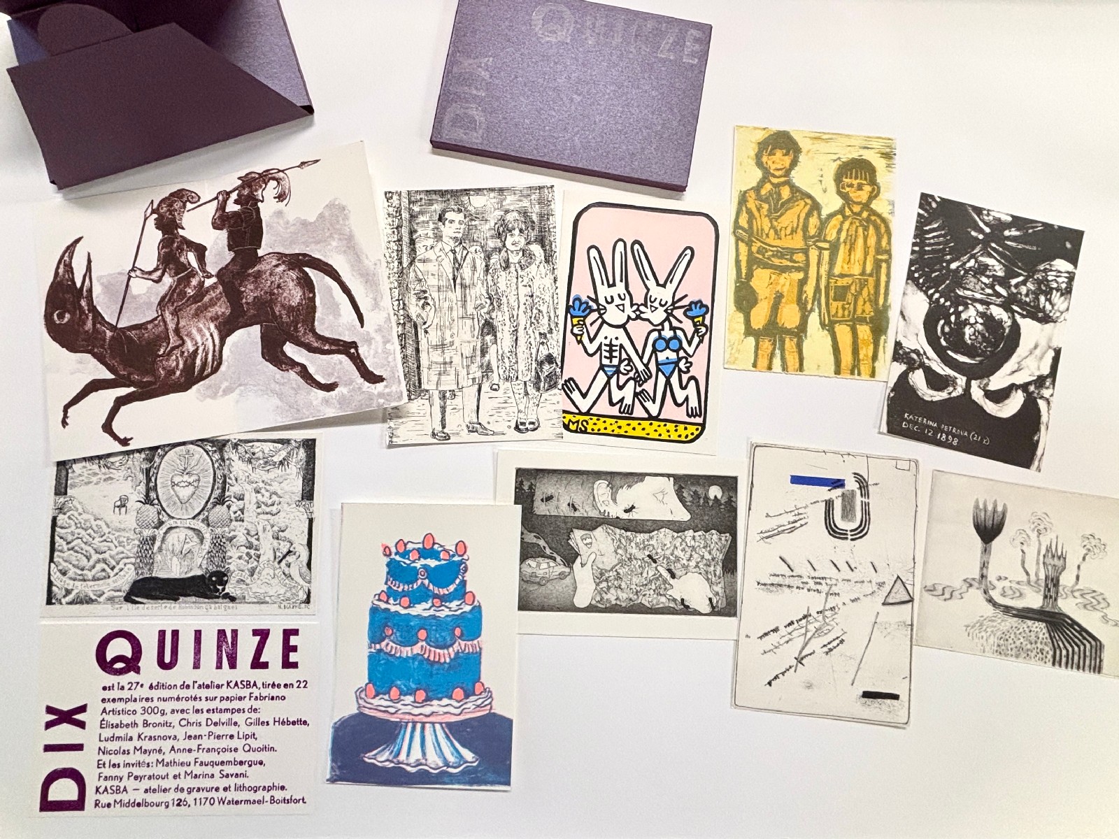 DIX QUINZE est la 27e édition de l’atelier KASBA, tirée en 22 exemplaires numérotés sur papier Fabriano Artistico 300g, avec les estampes de: